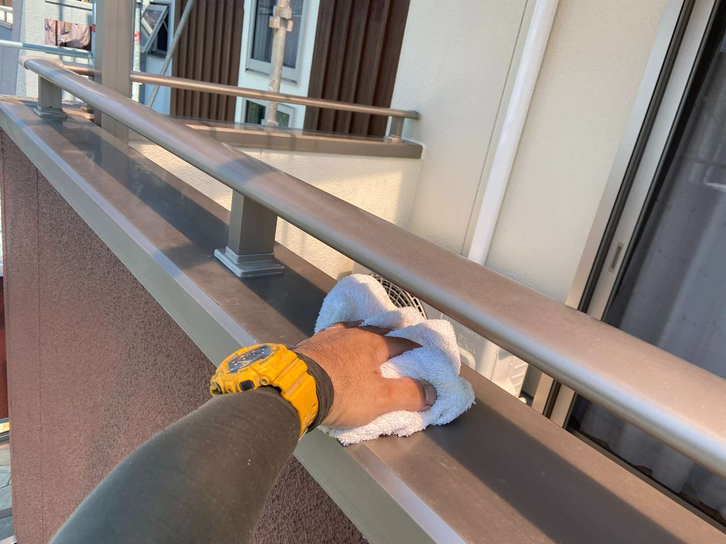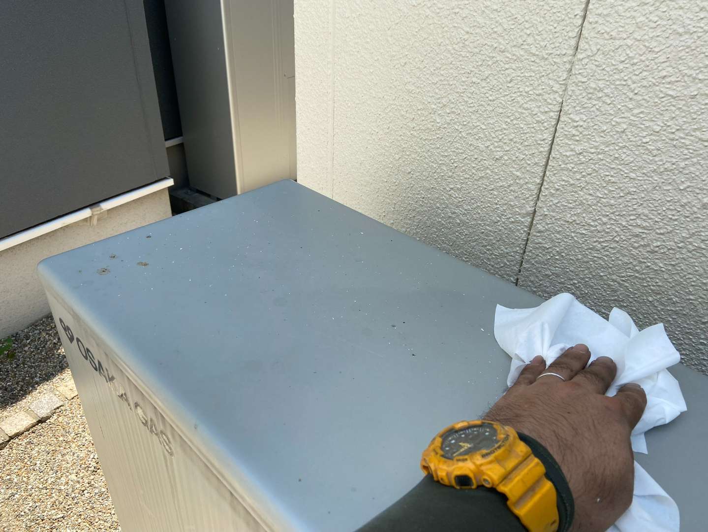 弊社は足場組み立て解体後もお客様が綺麗になった自宅を少しでも気持ちよく思って頂けるよう、ベランダ手すりや給湯器室外機上などのホコリなどの掃除などもおこなっております。